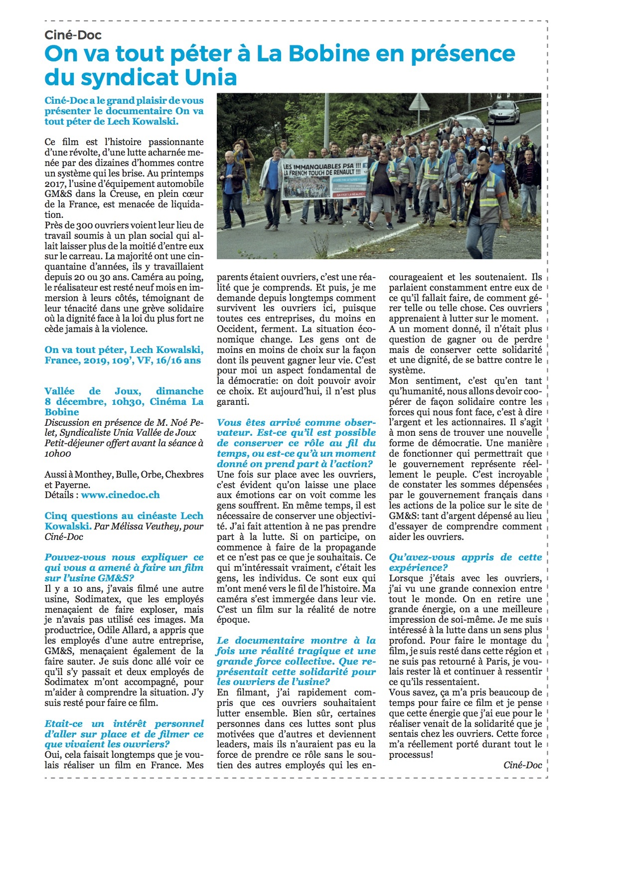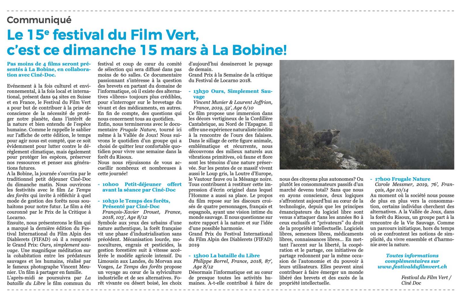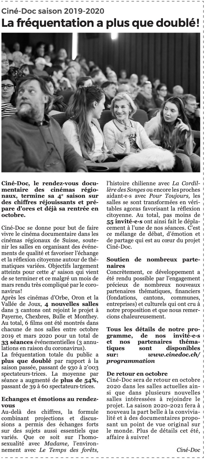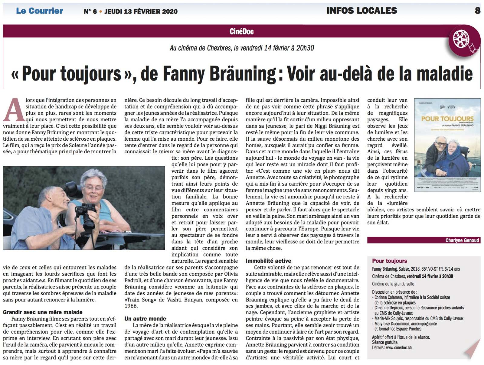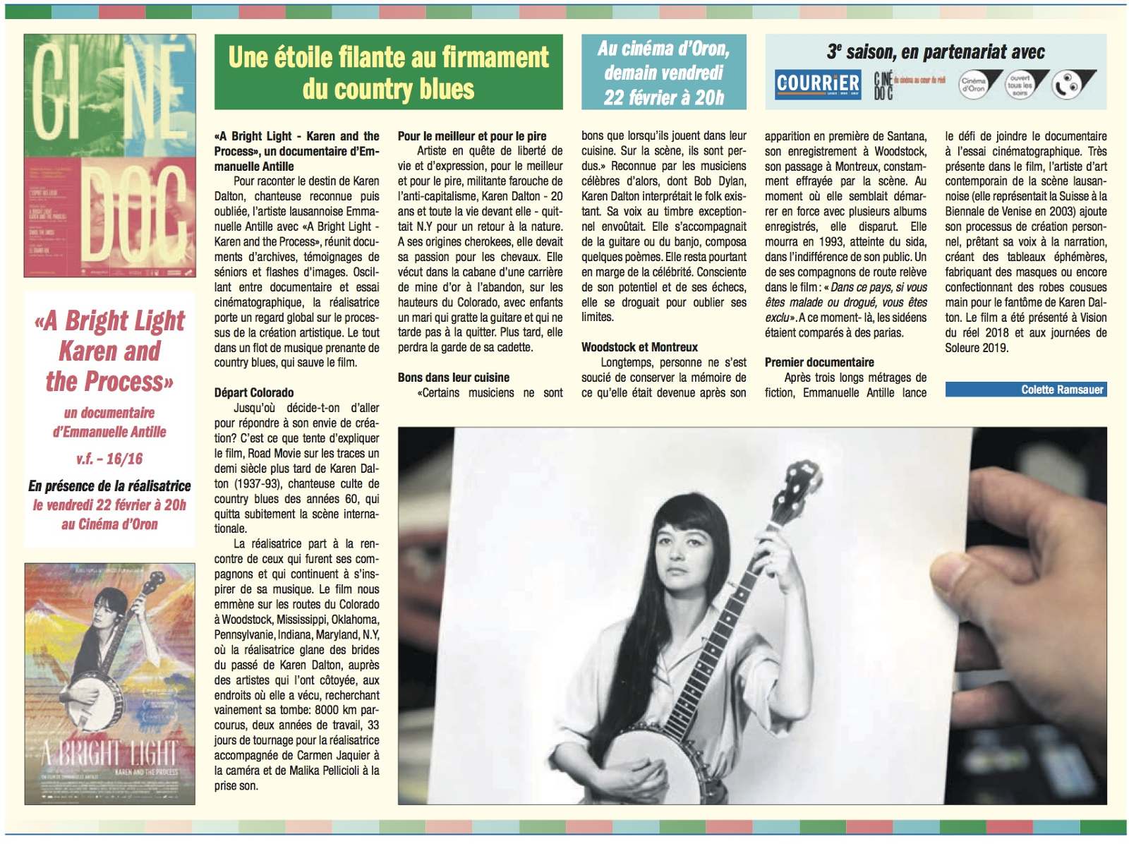 Le Courrier d'Oron, Charlyne Genoud, 13 février 2020