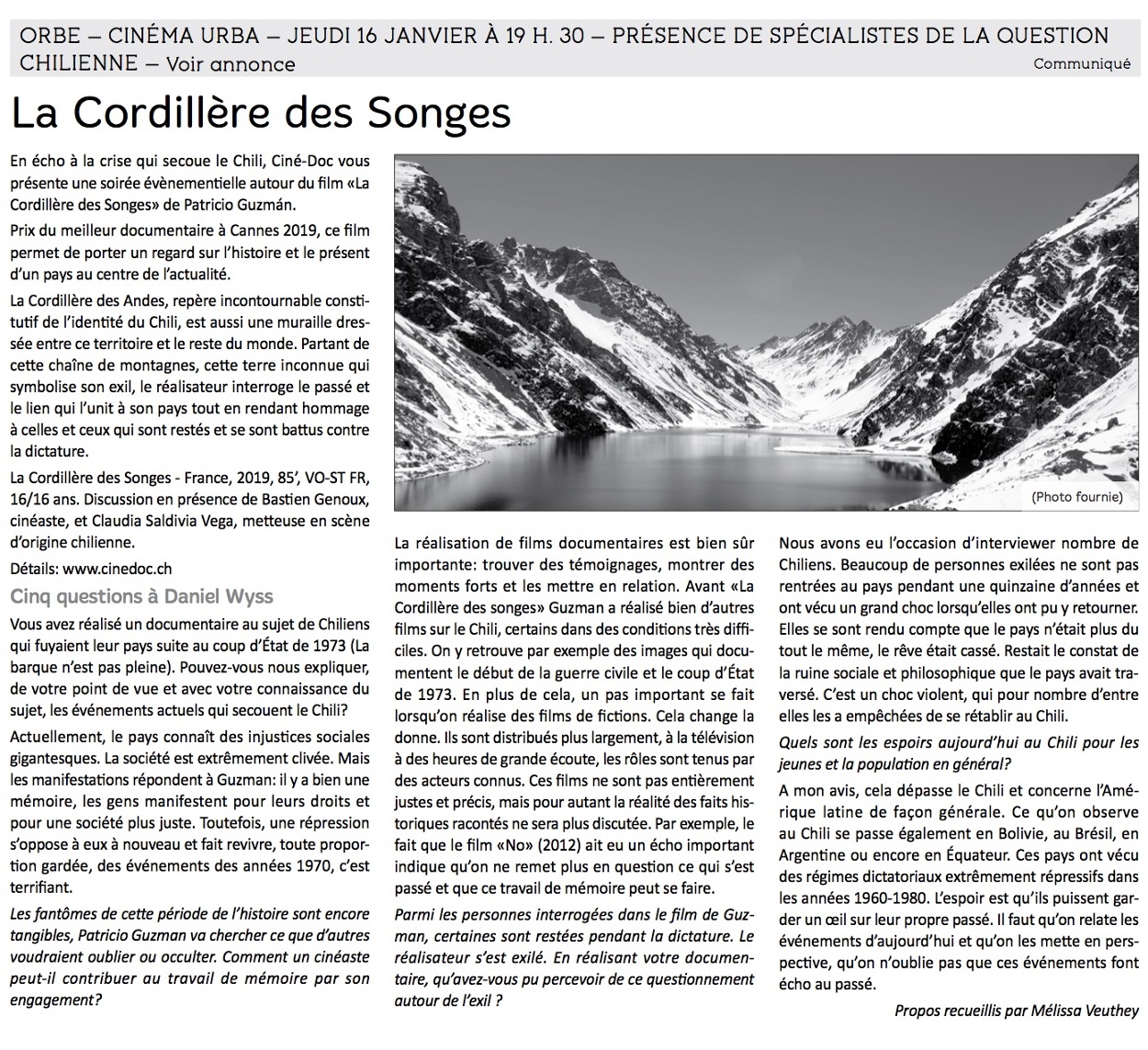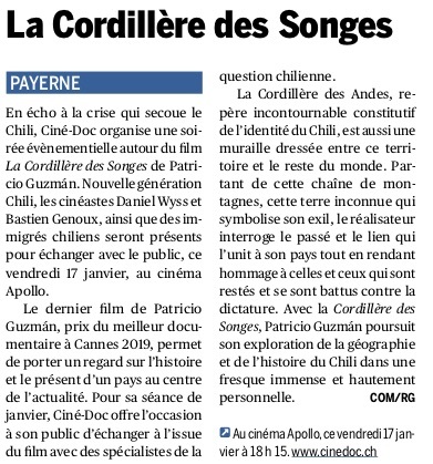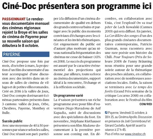 Le Courrier d'Oron, Charlyne Genoud, 16 janvier 2020