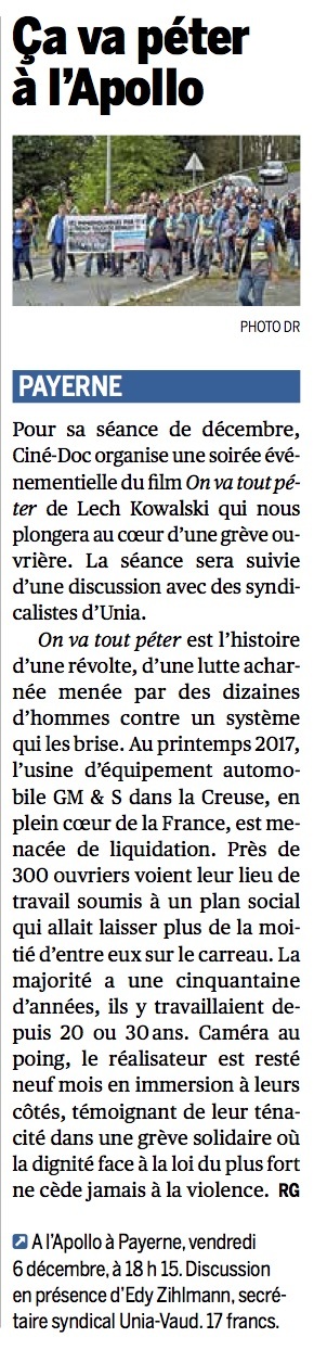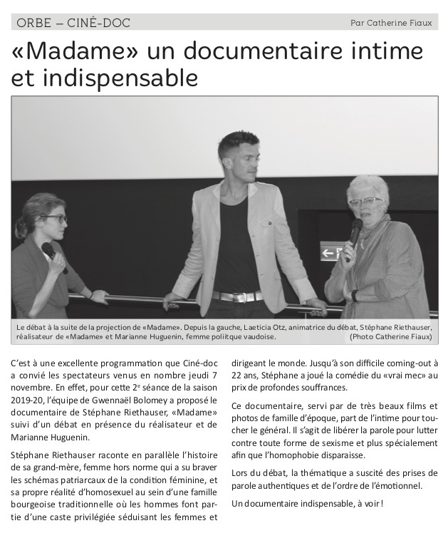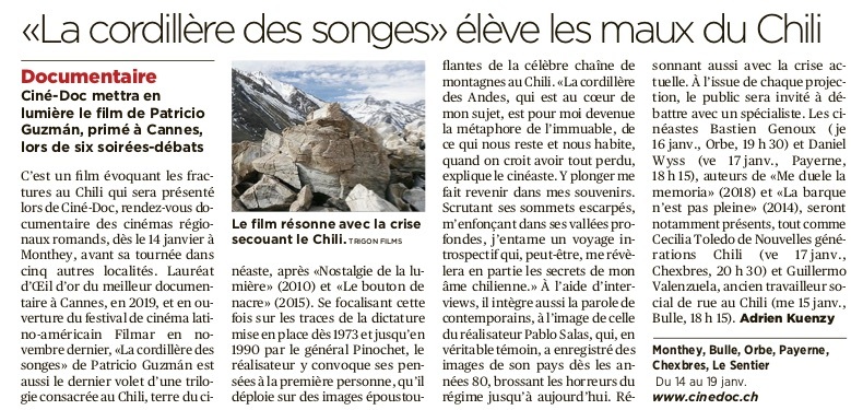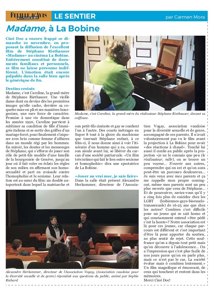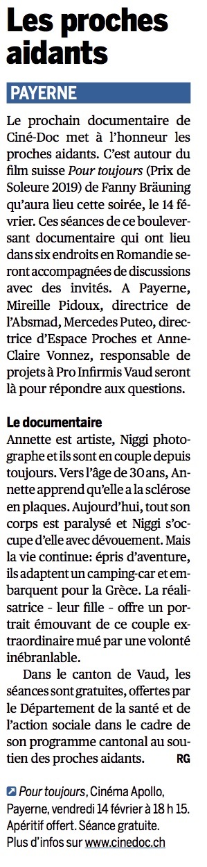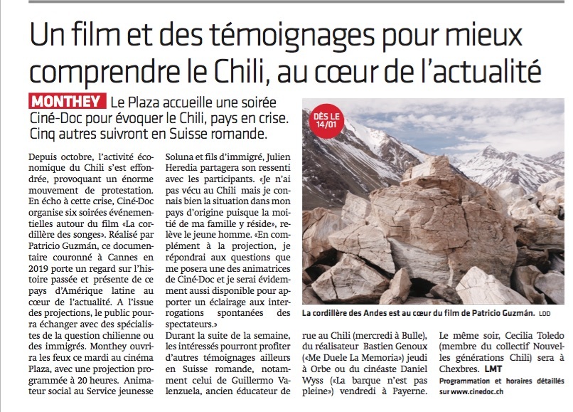 Le Nouvelliste, Lise-Marie Terrettaz, 14 janvier 2020
