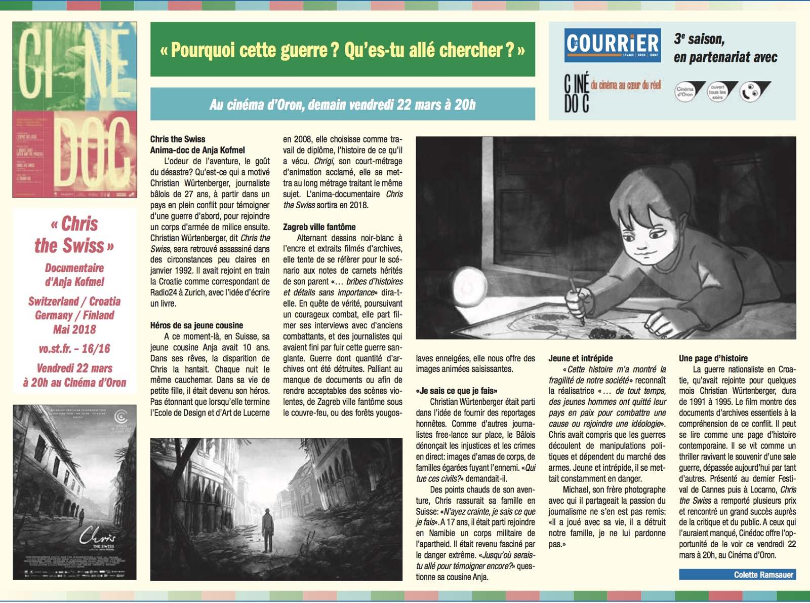 Le Courrier d'Oron, Charlyne Genoud, 12 mars 2020